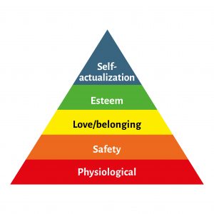 As a humanist, Maslow believed people have an inborn desire to be ‘self-actualised’. In other words, to be all they can be. To achieve these ultimate goals, however, a number of more basic needs must first be met such as food, safety, love, and self-esteem. Once these basic needs have been met, people then move on to the next level, which are for safety and security.