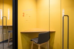 “Several small glass booths have been created to offer smaller, more private spaces, for people to take phone calls or have one-to-one meetings, while remaining in an open plan environment. It is now much more accessible, however private rooms are still available for larger, more formal meetings.