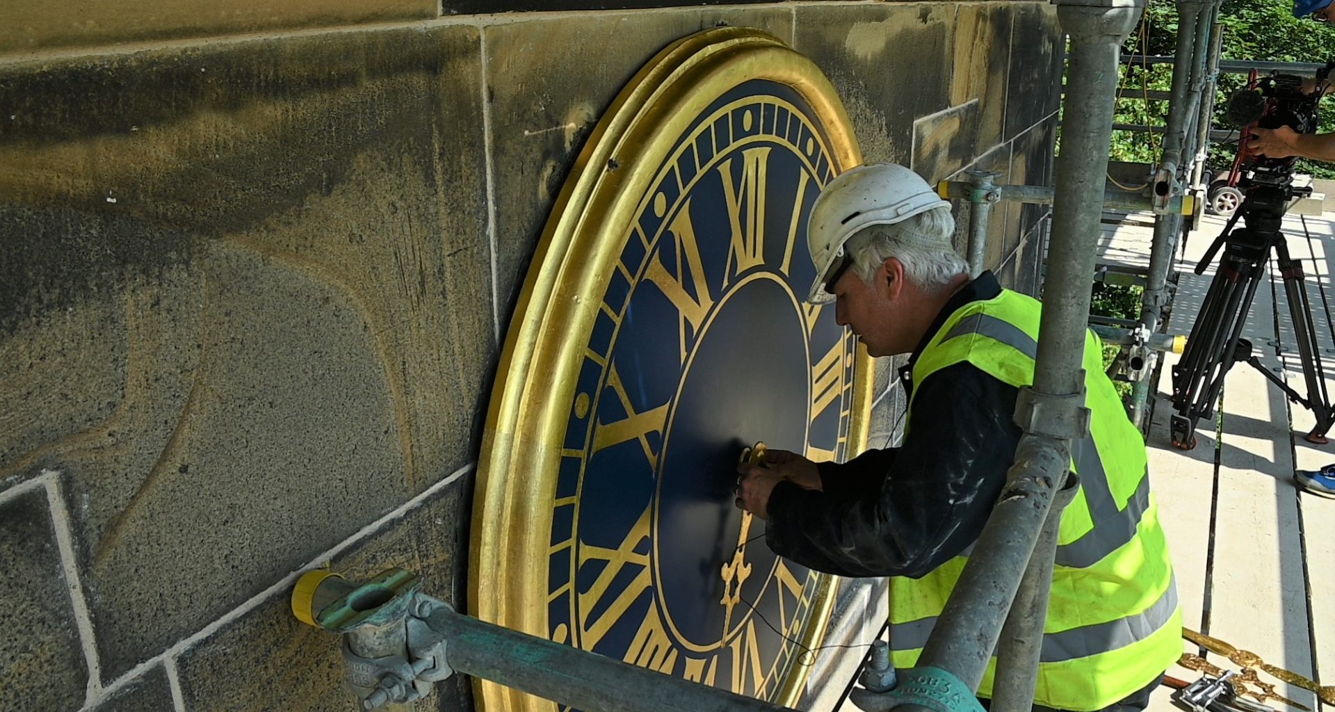 Harriet Sharman, a conservation specialist currently working with Pinnacle Conservation, gilded the numbers onto the clock faces and the outer rings.